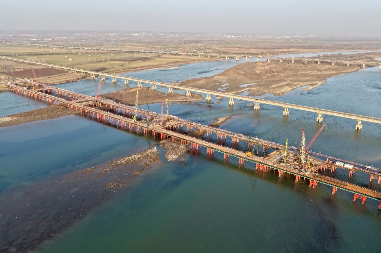 作为焦洛平高铁全线的“咽喉”,洛阳黄河公铁大桥总长13.36公里,河南铁建投集团河南城际公司建设,由中铁大桥局负责施工,上层通国道G208,双向八车道;下层跑高铁,设计时速350公里。
