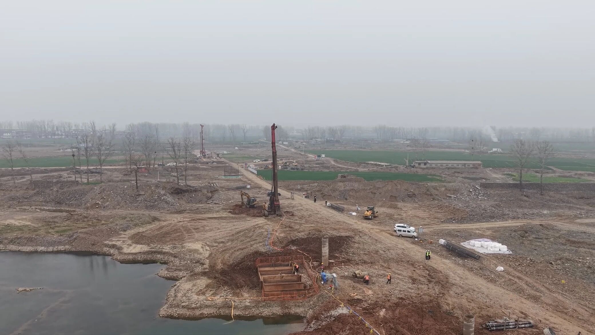 作为焦济洛平高铁的关键控制性工程,汝阳北汝河特大桥属于站前七标线路,线路全长近34公里。桥梁占比超六成,兼具施工任务繁重、技术标准严苛、建设难度较大等多重特点。其中,汝阳北汝河特大桥全长2585米,横跨北汝河流域。2025年12月,该桥首根桩基顺利开钻,项目正式开工建设。