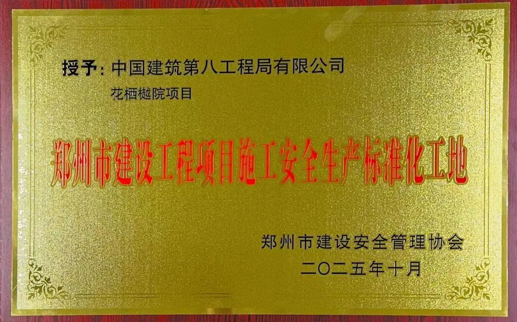 近日,铁建投城发·花栖樾项目获评郑州市“建设工程项目施工安全生产标准化工地”。