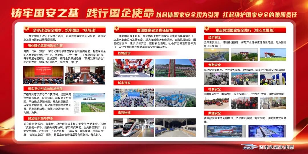 今年4月15日是第11个全民国家安全教育日。河南铁建投集团紧扣宣传教育主题,精心组织、联动开展了系列专题学习与成果展示活动,切实引导全体干部职工牢固树立总体国家安全观,将安全发展理念深度融入集团主责主业,以实际行动践行国企的责任与担当。