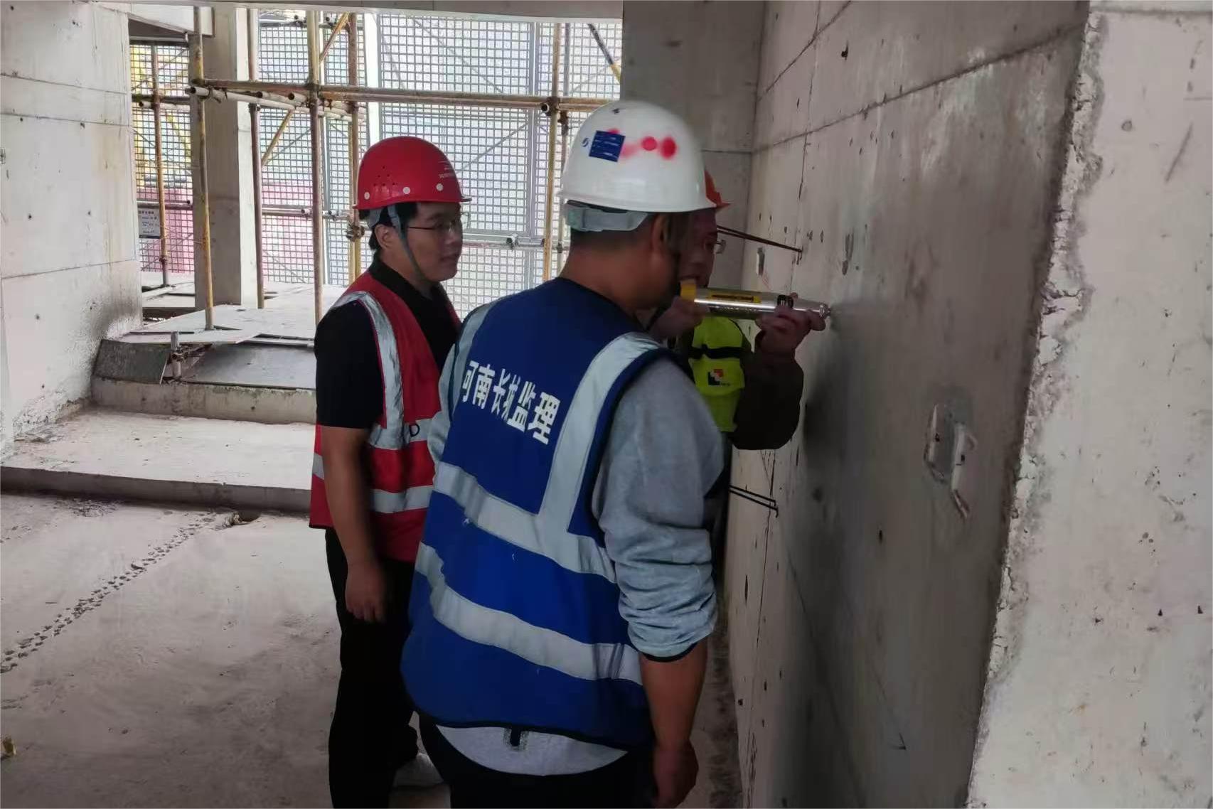 △崔玉坤在项目现场监督混凝土强度回弹测试